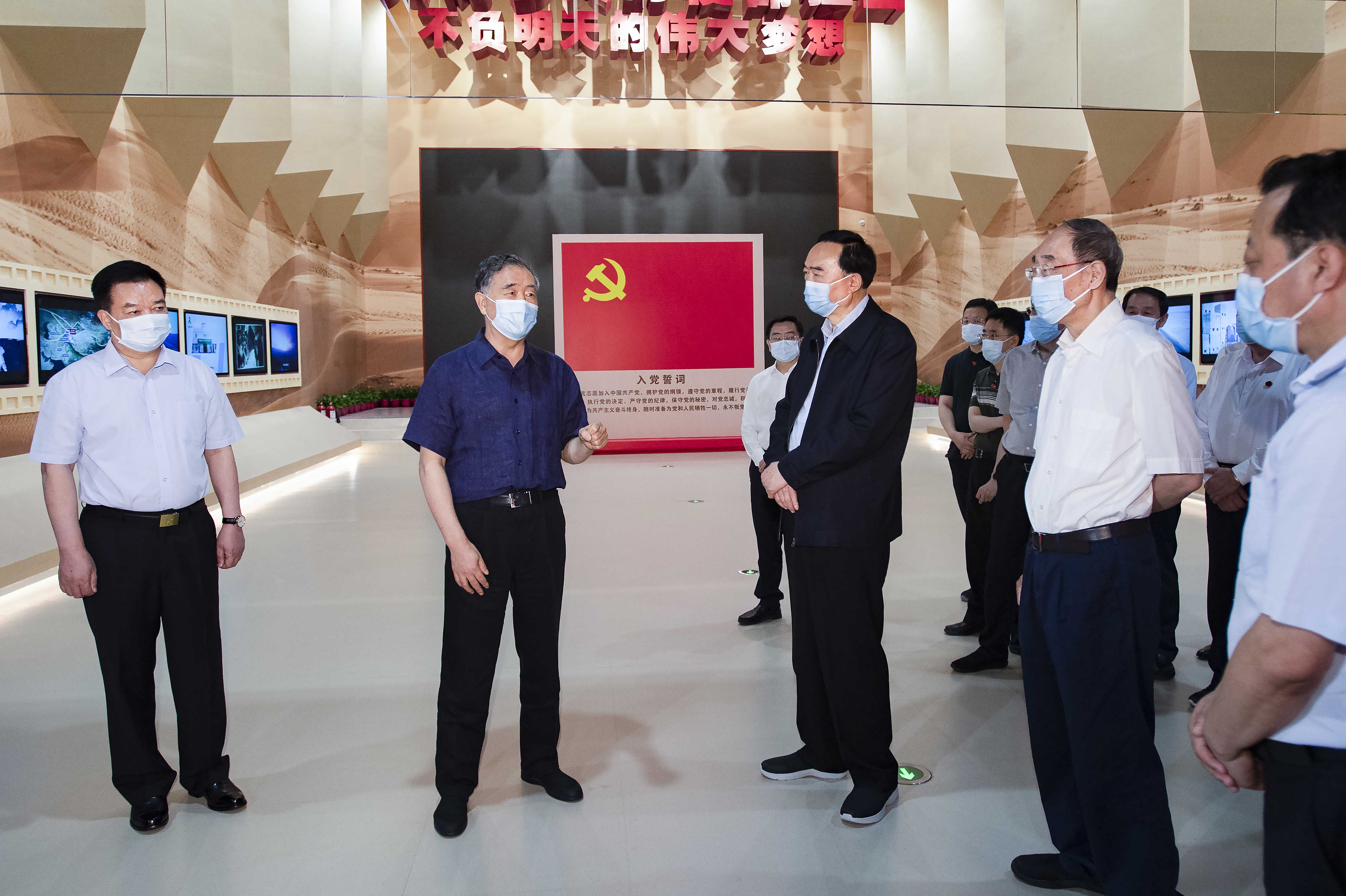 7月21日至24日,中共中央政治局常委、全国政协主席汪洋在新疆调研兵团工作。这是22日,汪洋在新疆兵团军垦博物馆了解兵团屯垦戍边历史。新华社记者 李涛 摄