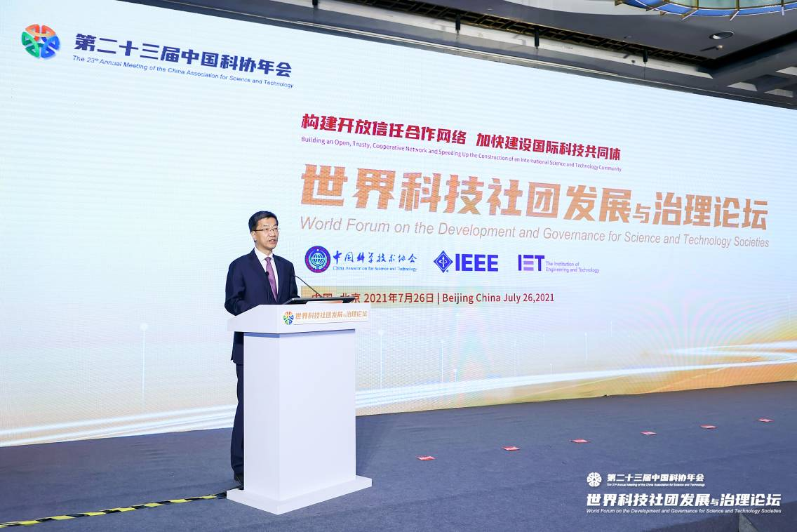 人民政协网北京7月26日电(记者 鲁雅静) 2021年7月26日,作为第二十三届中国科协年会的一项重要内容,世界科技社团发展与治理论坛在京举办。本次论坛由中国科学技术协会、美国电气与电子工程师协会(IEEE)、英国工程技术学会(IET)共同主办,以“构建开放信任合作网络 加快建设国际科技共同体”为主题,围绕可持续发展与碳排放、国际科技奖励、国际科技治理、人类生命健康、人才成长与会员服务等议题开展主旨报告和高端对话研讨。
