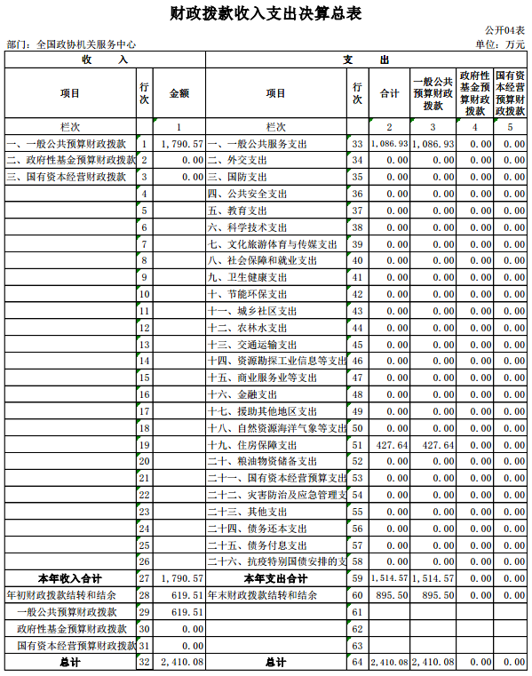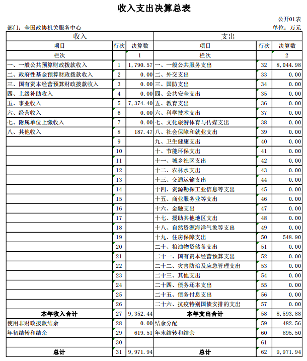 关键词:机关 全国政协 支出 决算 收入