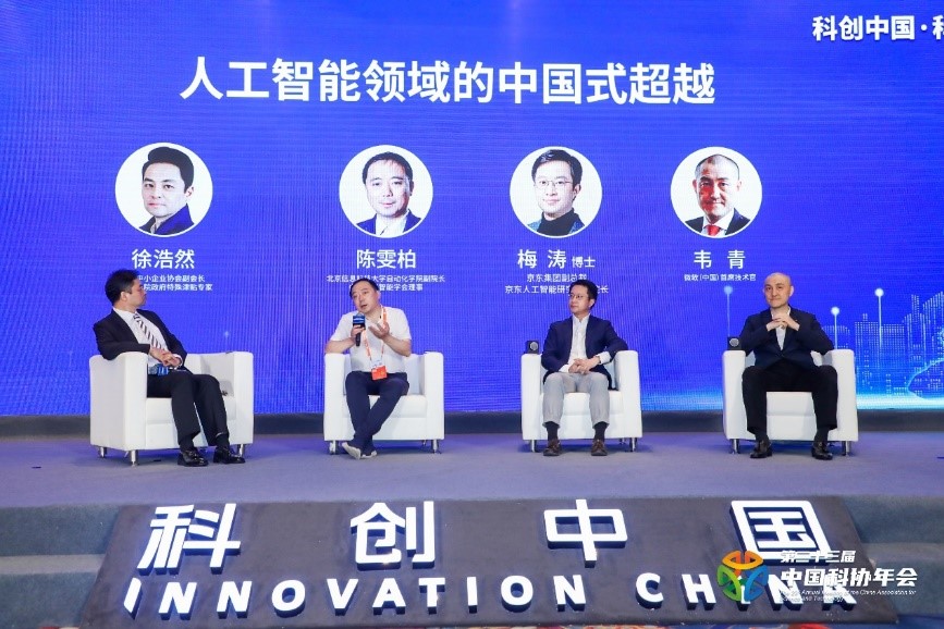 在题为“人工智能领域的中国式超越”对话环节,北京信息科技大学自动化学院副院长陈雯柏,京东集团副总裁、京东人工智能研究院副院长梅涛,微软(中国)首席技术官韦青分别就“人工智能领域的中国式超越”展开讨论。陈雯柏表示,人工智能掀起了科技发展的第三次浪潮,大量数据、大量用户以及强大的计算能力是推动人工智能发展的三驾马车。梅涛认为,人工智能提升了效率的同时,降低了成本。韦青则表示,人工智能是趋势,也是未来。不过,人工智能目前有些过热,要适当降温。