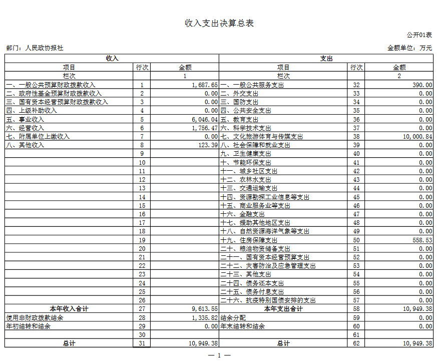 2020年收入总计10949.38万元,支出总计10949.38万元。与2019年相比,收支总计各减少2541.93万元,主要是财政拨款、受新冠肺炎疫情影响事业收入减少。