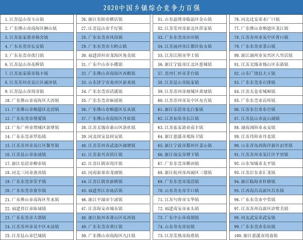 以科学评价引领乡村高质量振兴 2020中国百强镇名单揭晓