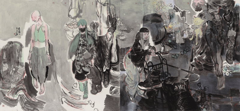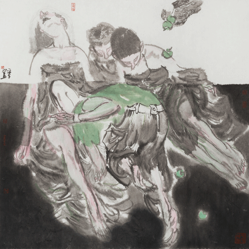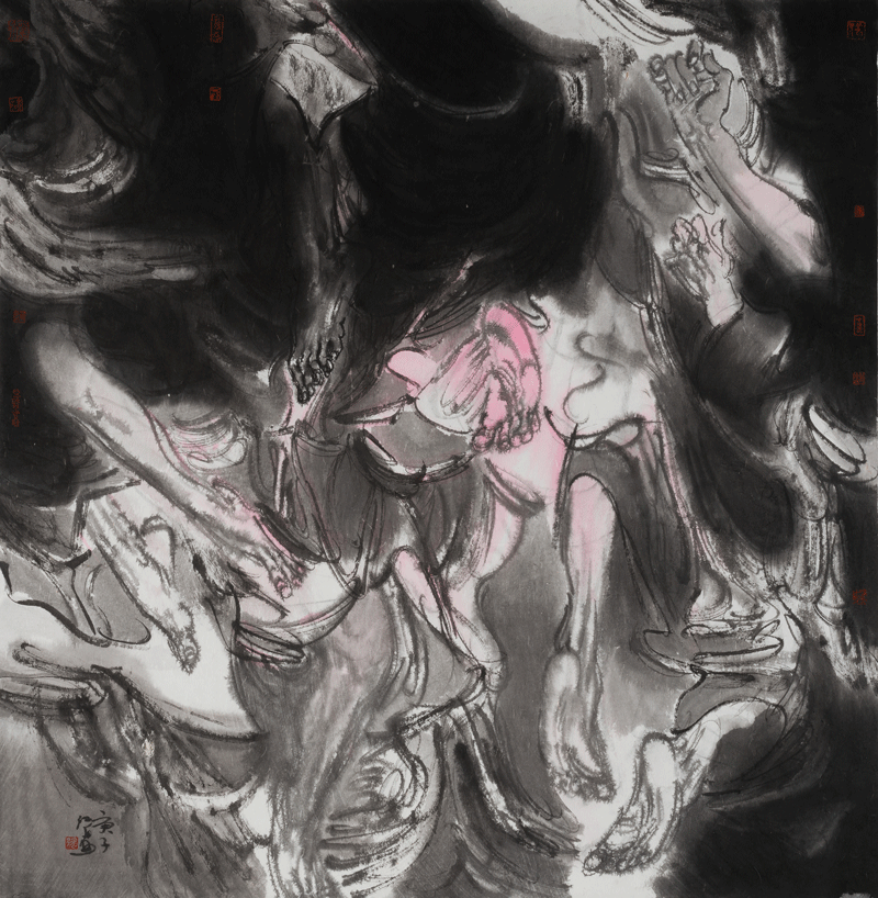 此前张江舟的生命墨语,更多地表达了对生命伤逝的一种悲怀,发掘了人性深处对于生命的思考,而这次他像是回到现实中,传递出人们在不同生命境遇中的情感表达,有对生命的赞扬、哀叹与忧郁,种种情绪像是被冰结在一起。所以我们看江舟的作品,不但要从艺术语言上理解他如何率真地表达情绪,还要体会他带给我们的心境与直觉的变化。他的作品实际上是一个现代人对于生活的理解,但又超越了对现实生活的直接再现,而是通过笔墨传递一种内在精神。