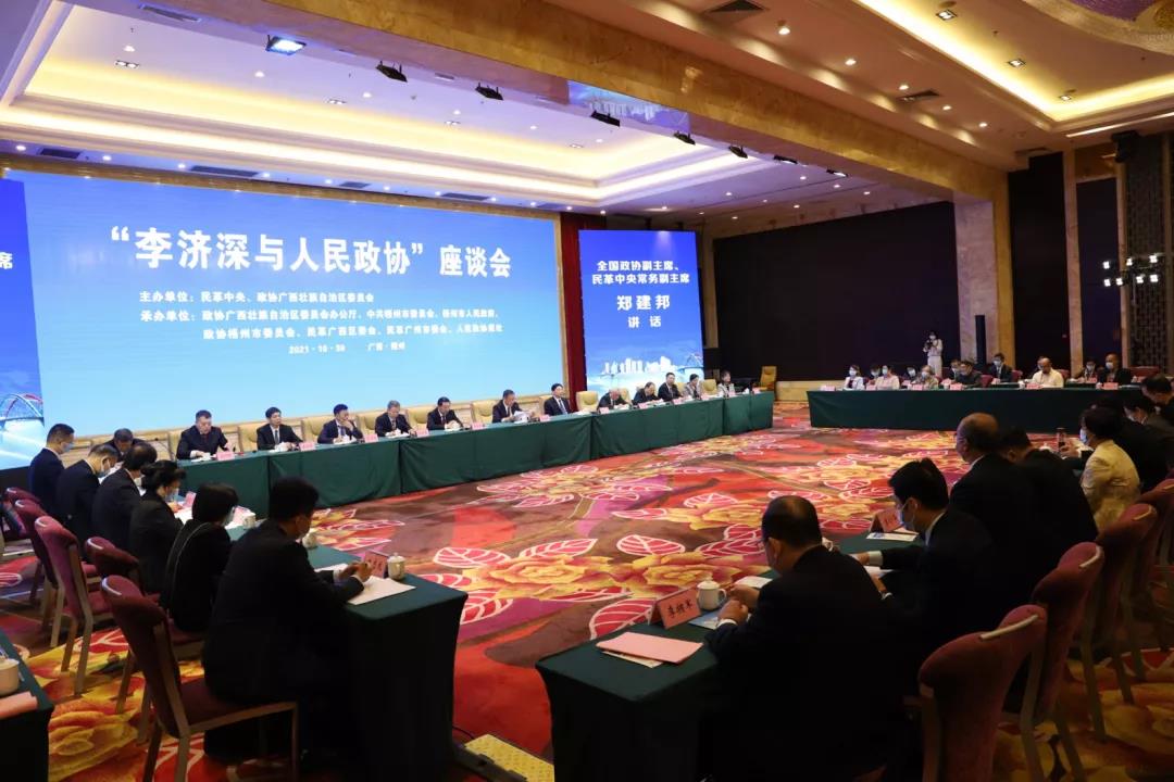 人民政协网梧州10月31日电(记者 宋宝刚 张佳琪 易欣 汪凯)10月30日下午,由民革中央、政协广西壮族自治区委员会主办,政协广西壮族自治区委员会办公厅、中共梧州市委员会、梧州市人民政府、政协梧州市委员会、民革广西区委会、民革广州市委会、人民政协报社承办的“李济深与人民政协”座谈会在广西壮族自治区梧州市召开。全国政协副主席、民革中央常务副主席郑建邦出席并讲话。