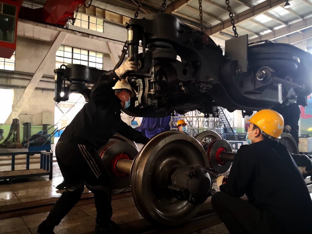 一节车厢跑满120万公里,就要入场进行“大卸八块”式的全面“体检”, 前后要经过多达24个班组、上百个岗位。大到上百吨重的轮对、车轮探伤“整形”、小到精细只有头发丝细的减震器减压阀调试, 既有无惧油腻油污车轮车轴的清洗岗位,同样也不能缺少一尘不染整洁标准的轴承和高科技数据检查检测工作环境,每一个环节都环环相扣,每一个岗位都不可或缺,所有的岗位和工种都在这一年最寒冷的季节里热火朝天地忙碌着。