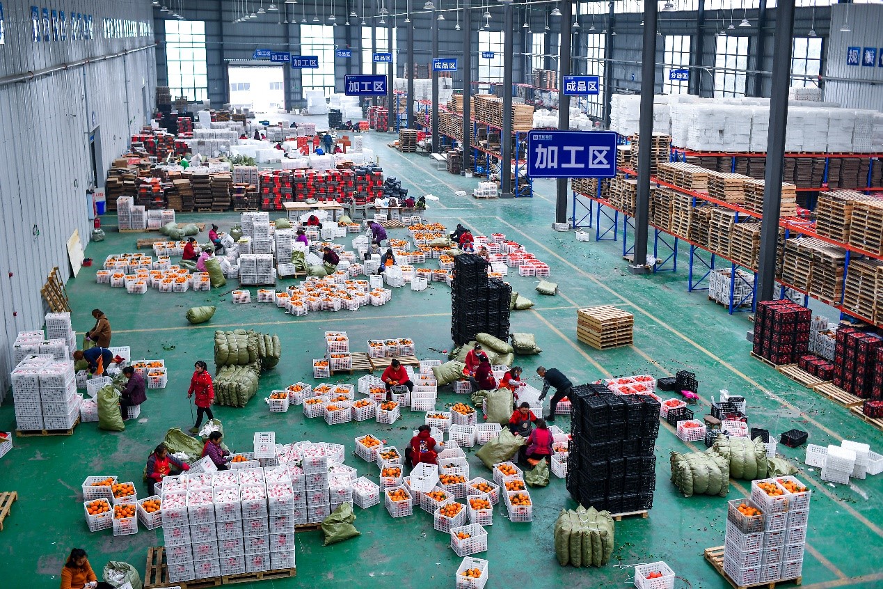 ▲ 丹棱橘橙目前已探索形成一条完整的农产品产业链,成功敲开三十多个省、直辖市、自治区消费市场的大门,并远销俄罗斯、东南亚等地。图为丹橙果业的采后加工仓。何浩|摄