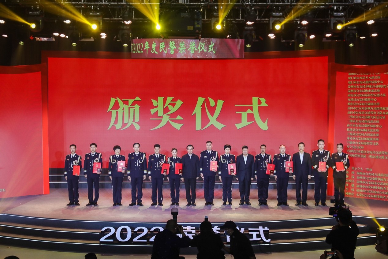 ? 福建省公安机关2022年度民警荣誉仪式隆重举行人民政协网福州1月11日电(记者 高杨)远离硝烟的年代,这是一支牺牲最多、奉献最大的队伍,为捍卫政治安全、维护社会安定、保障人民安宁筑起了一道坚不可摧的铜墙铁壁。1月10日,时值第二个“中国人民警察节”,福建省公安厅举办了“擎旗奋进新征程”2022年度民警荣誉仪式,见证金盾下的荣光,激励广大公安队伍凝聚意识,擎旗前行,努力为党的二十大胜利召开,为全方位推进高质量发展超越、奋力谱写全面建设社会主义现代化国家福建篇章贡献公安力量。省领导罗东川、梁建勇、黄海昆、林钟乐,省直相关部门负责同志出席荣誉仪式并颁奖。