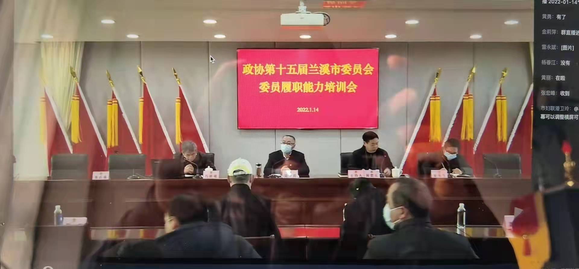 兰溪市政协召开新一届委员履职能力培训会人民政协网1月19日电(记者 张佳琪 通讯员 朱兰庆 叶胤军)1月14日上午,兰溪市政协召开新一届委员履职能力培训会,本次培训会采用线上线下同步进行的方式,让分布在各地的委员们“足不出户”就能上好履职第一课。