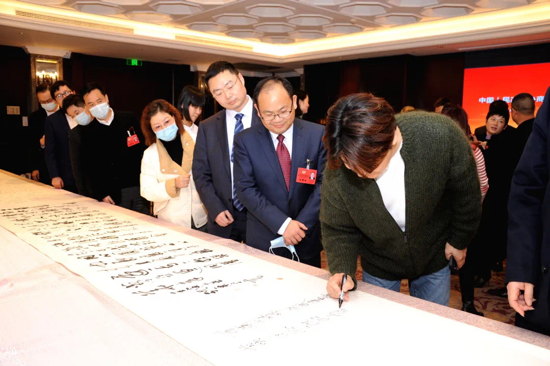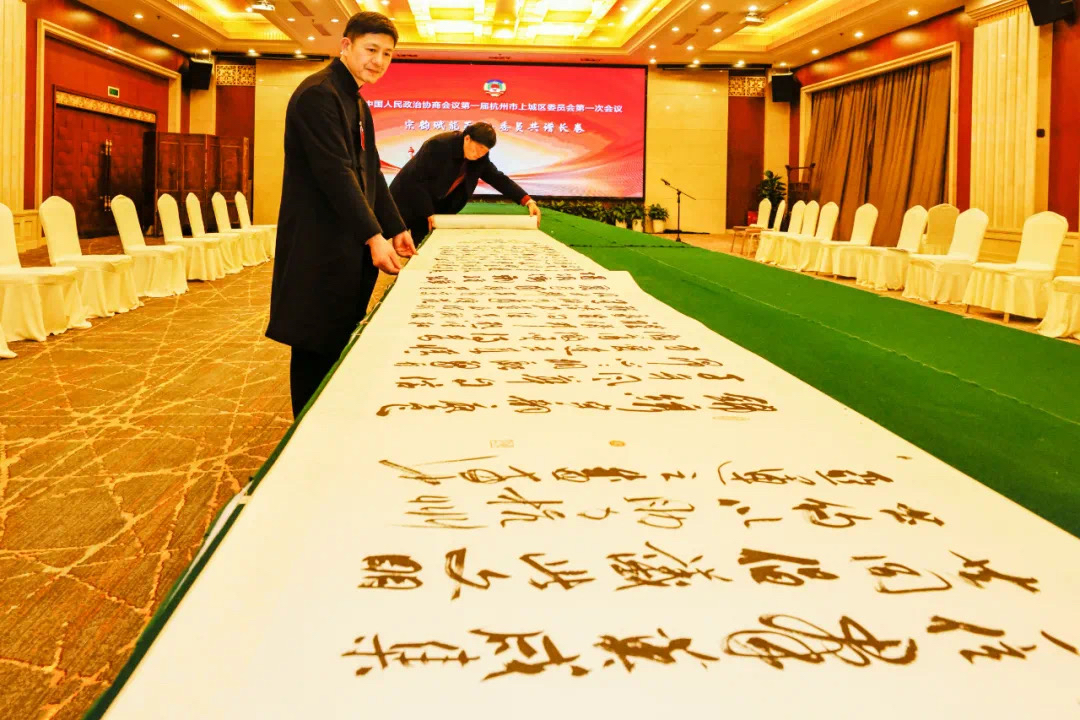 2月15日元宵节当晚,区政协委员齐聚一堂,热情参与“宋韵赋能亚运”委员共谱长卷活动。300余名委员在宋韵版本的“迎亚运”《文明公约》上郑重签名,以别样形式共同跨入亚运年。