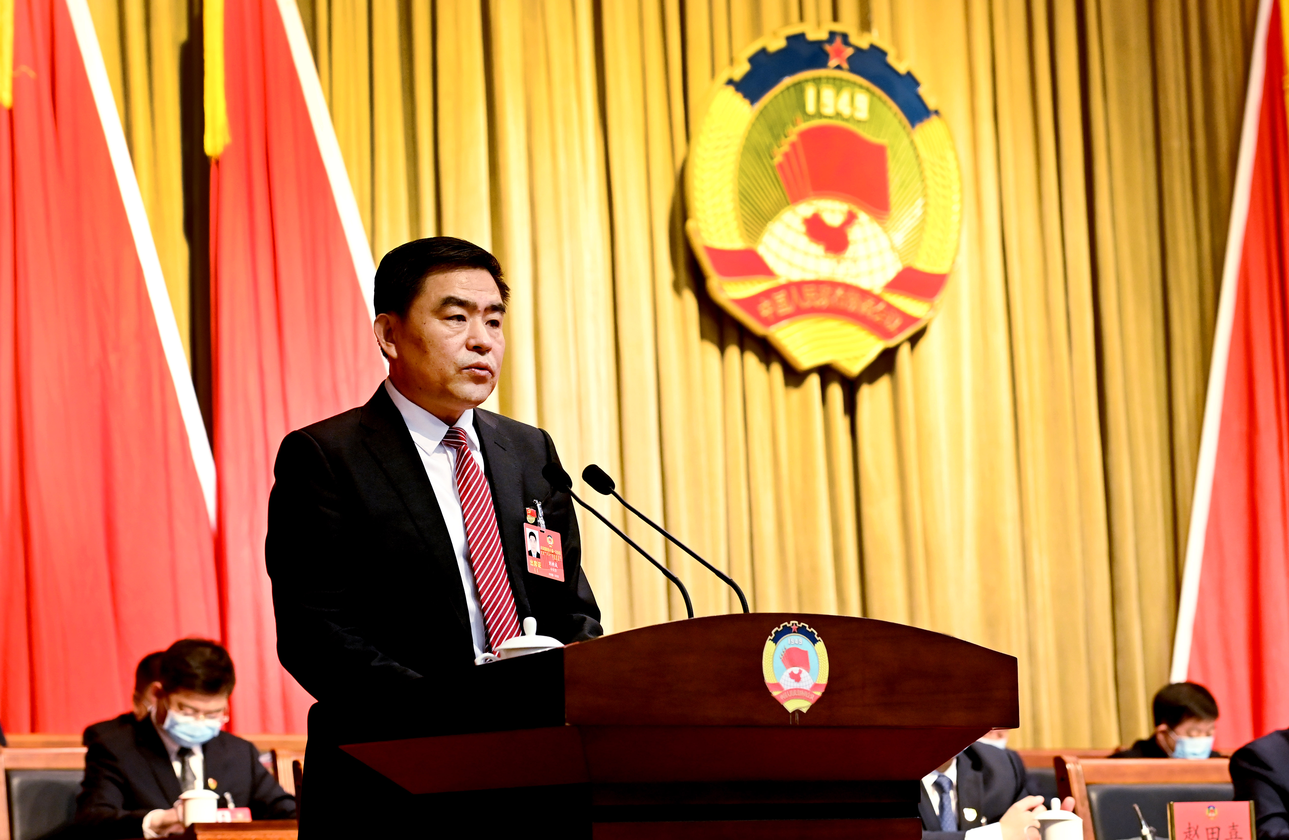 兴安盟政协党组成员,副主席白云海向大会报告提案工作情况
