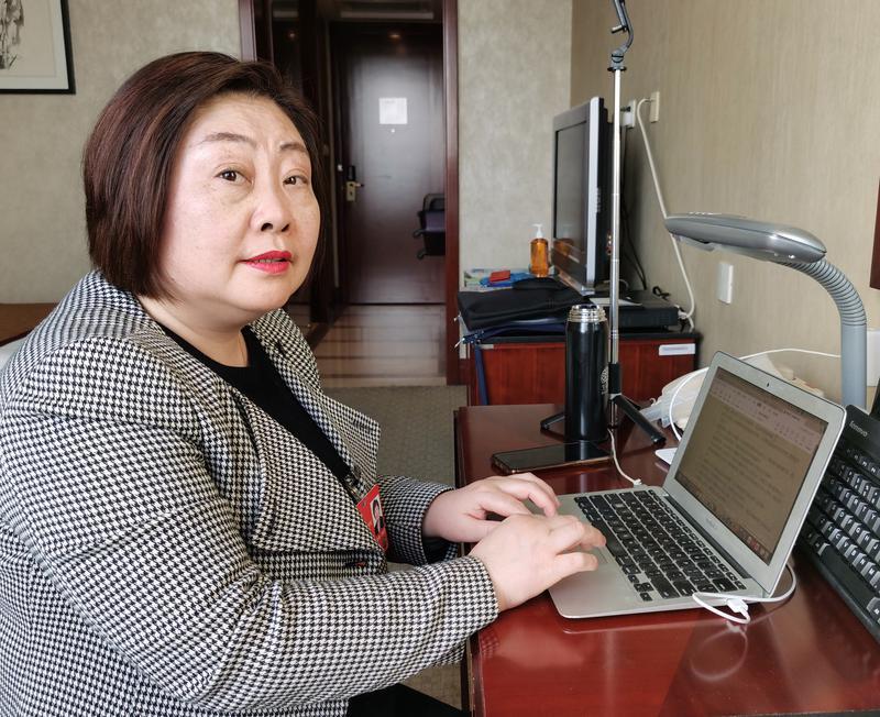 对外友好界黄绮委员报到后在驻地房间修改提案,王众一摄