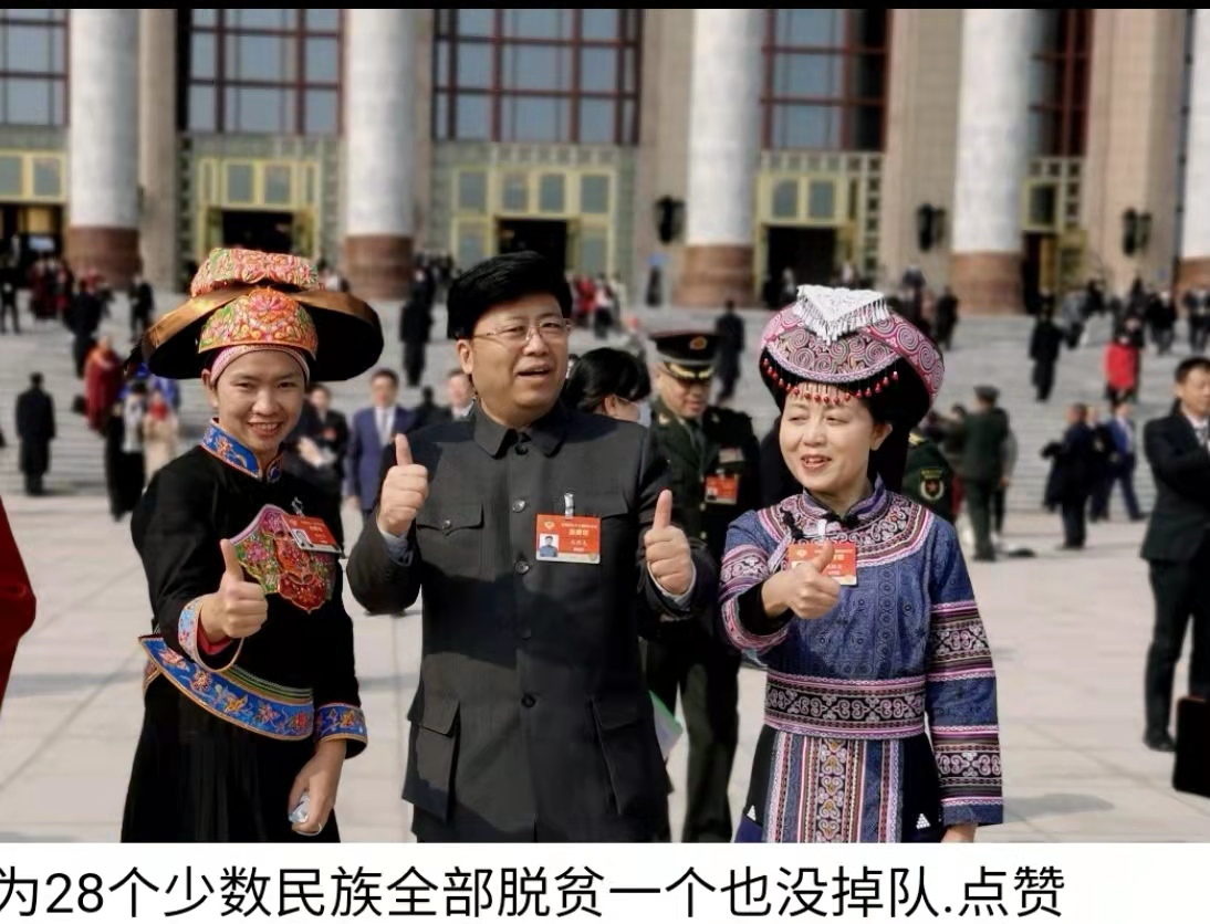 在听完振奋人心的报告,精神焕发地走出大会堂的委员中,有不少穿着民族盛装的少数民族委员,成了大会的一道靓丽风景线。她们既是实现脱贫攻坚、建成小康社会的参与者,也是56民族中同样受益的少数民族代表。