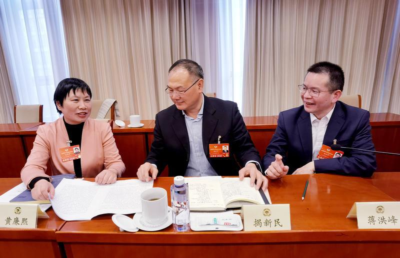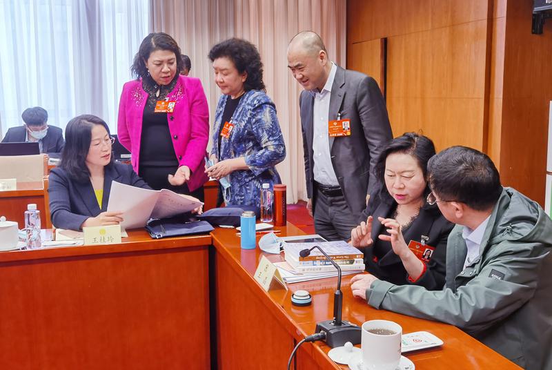 3月5日,审议政协常委会工作报告和提案工作情况的报告。下午的分组讨论结束后,部分委员们还迟迟不肯离开,三三两两,继续热议政府工作报告。特约委员记者甄贞 摄影