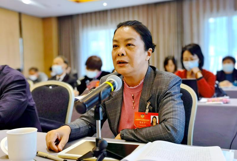 黄丽云委员在小组会议就政协常委会工作报告作发言。特邀委员记者茸芭莘那摄