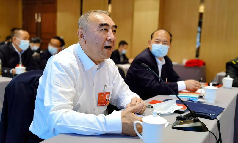 来自新疆的塔塔尔族委员伊尔扎提.扎达讲述十年的履职感触。特邀委员记者 茸芭莘那摄