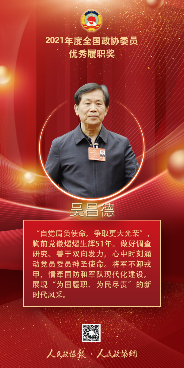 获奖感言 全国政协是可以学有所成的大学校和有所作为的大舞台。许多委员积极履职尽责,为党和国家事业作出了突出贡献。自己只是做了一个老党员应该做的一点工作,能得到这么高的荣誉,既心有不安,又深受激励。我一定敬终如始,珍惜有限履职时间,努力站好最后一班岗!