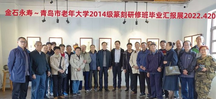 人民政协网青岛4月27日电 时已暮春,草长莺飞。4月20日至26日,“金石永寿” — 青岛市老年大学2014级篆刻研修班毕业汇报展举办。展览由洛川家文化主办,民建中央画院青岛分院协办,汇集了20多位青岛老年大学毕业学生的精品力作,是中国书法家协会会员,中国民建中央画院院士刘升语教授教学功业和同学们学习成果的最好见证。