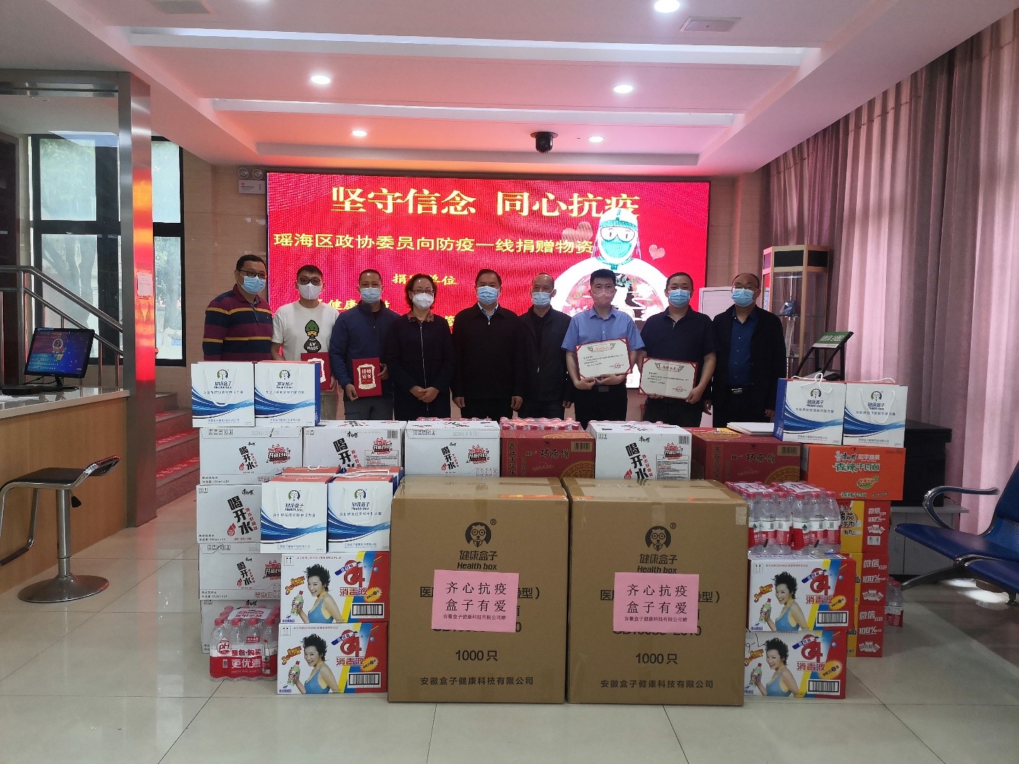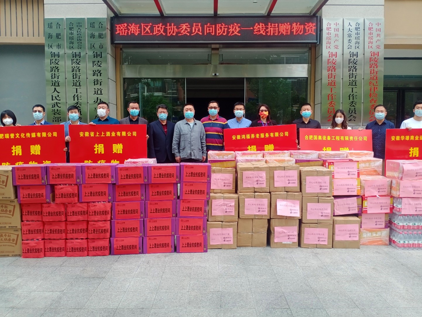 合肥市瑶海区政协委员同心抗疫显担当4月28日上午,安徽省合肥市瑶海区政协再次组织区政协委员在铜陵路街道、七里站街道开展防疫物资捐赠活动。王际阳、吴逵、窦毅等委员筹集隔离衣、方便面等物资参加了捐赠,曹戴红、谷前锋委员不但自己捐款捐物,还发动身边的企业家和朋友为街道送去口罩、防护服、矿泉水等物资。