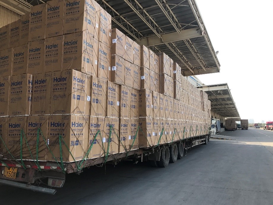 ▲在今年618期间,海尔荣登拼多多冰箱、洗衣机两大单品的销量冠军,图为海尔产品正在出库。(受访者供图)