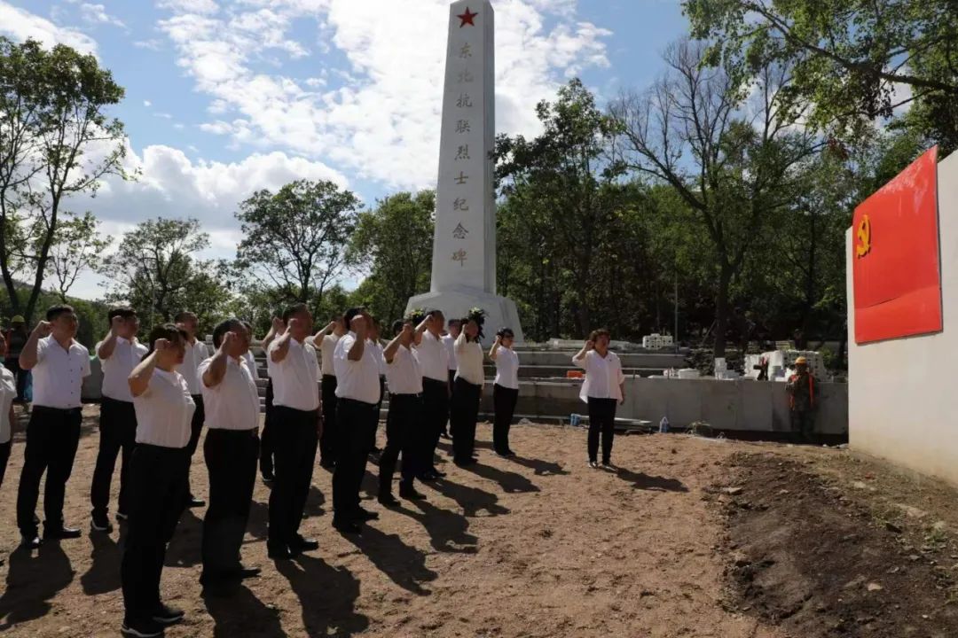 7月1日,在五大连池市东北抗联烈士纪念碑前,政协机关党员干部职工、政协委员代表认真聆听朝阳山保卫战历史,向纪念碑敬献花篮,全体党员重温入党誓词,集体合唱《没有共产党就没有新中国》,大家在歌声中颂党恩,深切缅怀革命先烈们的丰功伟绩。