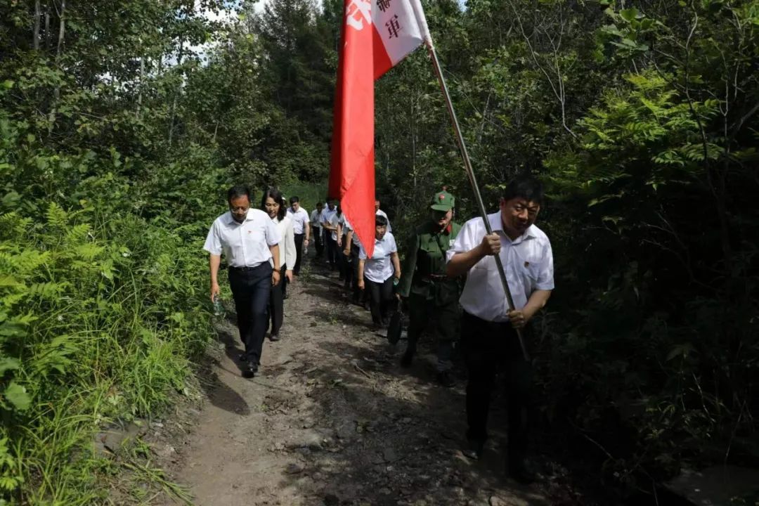 随后,大家踏着革命先辈的足迹,走上朝阳山,重走抗联路,参观抗联第三路军总指挥部遗址,详细了解抗联第三路军建立和战斗的历史。