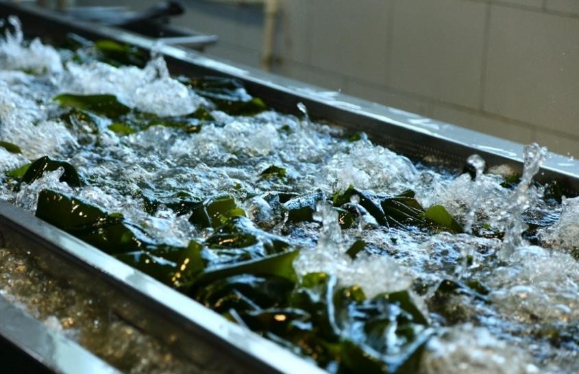 ▲图为海之宝工厂拥有的国际一流标准的海带生产线,出厂的每个产品都能做到可溯源。薛童|摄