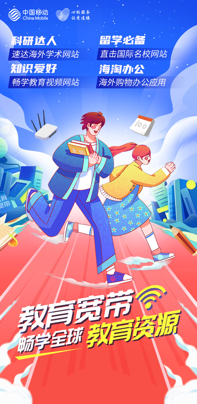 中国移动聚焦远程教育人群的网络需求,面向有访问海外学习网站需求、慕课需求的用户,推出的“场景化宽带·教育宽带”产品。