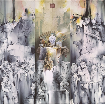 “我以超现实主义的绘画风格展现了郑和下西洋途经各国时的盛况,作品采用中国传统绘画语言营造灵动气韵和水墨趣味,又结合西方绘画技法塑造光影效果,在写实和写意之间转换,形成东西方文化艺术交流的艺术风格呈现。”走进展厅,青年画家黄华兆以海上丝绸之路为主题创作的三联画《盛世海丝》前聚集了许多观众,他正站在画作前向观众讲解创作过程。同样,青年画家唐婧的《一起向未来》作品也入选此次展览。她介绍,在创作中,她时刻牢记“为时代画像、为人民画像、为广西画像”宗旨,寻找个性绘画语言,将现代工业符号化,人物与机械相互呼应,力求具有学术性和艺术性。
