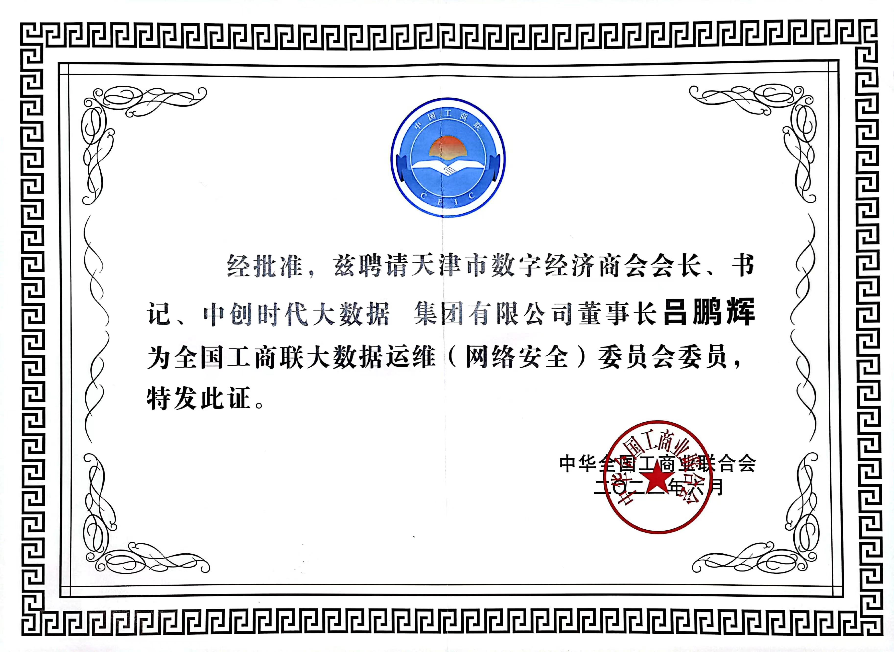 近日,经中华全国工商联批复,北京市房山区政协委员、中创时代大数据集团董事长兼首席执行官吕鹏辉受聘为全国工商联大数据运维(网络安全)委员会委员。