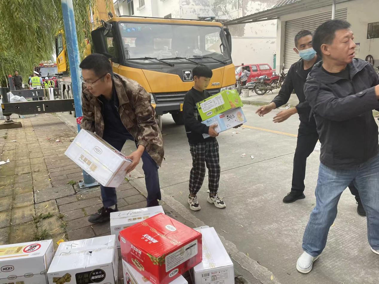 石棉县政协主席陈洪忠(左)带头帮助搬运救灾物资。(石棉县政协供图)