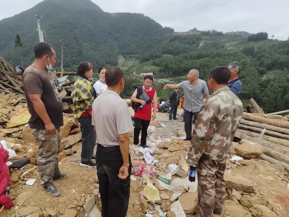 市政协副主席陈茂瑜一行在双坪村指导排危,发动群众自救(雅安市政协供图)