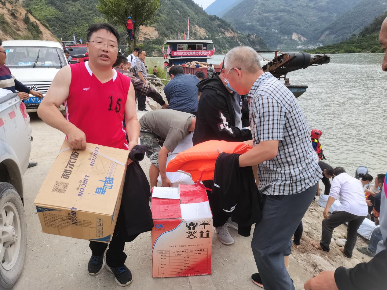 委员们正在帮助搬运送新民乡双坪村的手电筒、消毒药水、雨衣等急需物资。(雅安市政协供图)