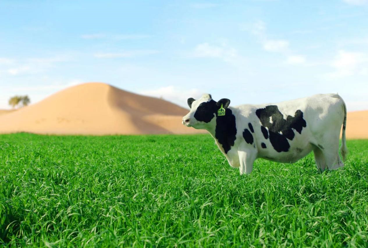 沙漠中满目碧绿,一望无际,不时地见到人们在田地中忙碌着……这里正是经过圣牧投资治理沙漠之后的饲料草场、防护林。十余年来,圣牧累计在乌兰布和沙漠投资75亿元,种树近9700万棵,开发有机饲料种植基地22万亩。建设牧场23座,养殖奶牛10万余头,日产鲜奶1300余吨。让周边巴彦淖尔更多的农牧民转化成产业工人。拥有固定员工4200人,间接带动全国100多万人就业。