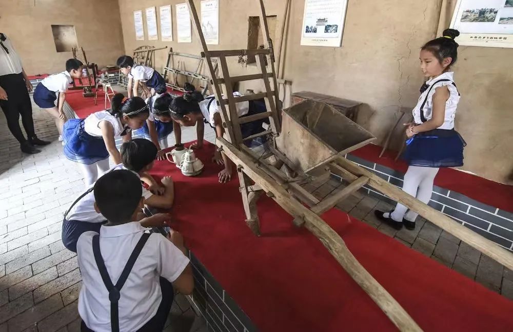 饶阳县南善旺小学学生在农耕展览馆内参观。新华社记者 李晓果 摄