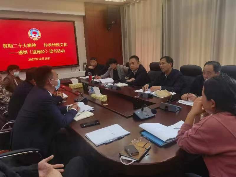 10月28日,鹿邑县政协开展“贯彻二十大精神 传承传统文化”--感悟《道德经》读书活动。河南省周口市鹿邑县政协主席会议成员张国庆、丁显辉、杨彩、魏军及部分住鹿省、市、县政协委员参加活动。
