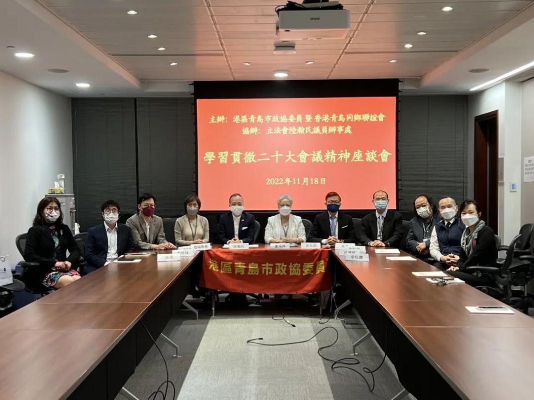 人民政协网青岛11月29日电(记者 陈小艳 通讯员 陈笑蔚 李思村)近日,为进一步学习和贯彻党的二十大重要精神,由青岛市港区政协委员暨香港青岛同乡联谊会主办、立法会陆瀚民议员办事处协办的学习贯彻党的二十大精神座谈会在香港特别行政区立法会办公大楼举行。青岛市港区政协常委、香港青岛同乡联谊会会长董瑞婷,青岛市港区政协常委、香港特别行政区立法会议员陆瀚民主持座谈。