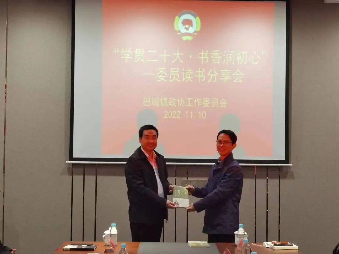 近日,昆山市巴城镇政协工委举办“学贯二十大·书香润初心”委员读书分享会。巴城镇党委副书记、政协工委主任李晟,挂钩联系巴城的政协委员、巴城镇政协工作联络员代表参加活动。