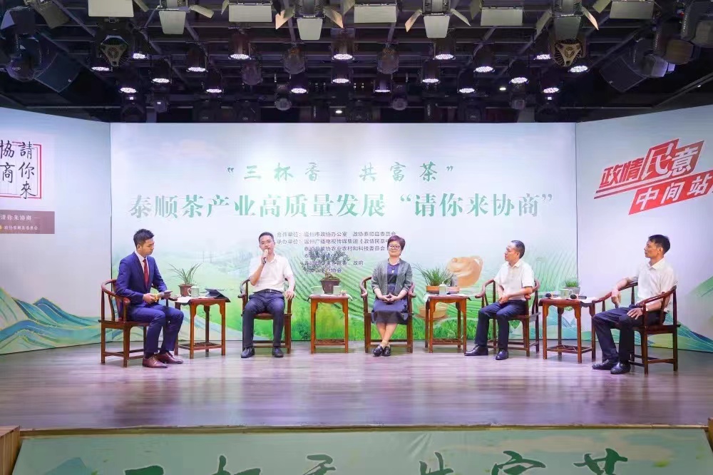 浙江省泰顺县政协在围绕“三杯香?共富茶”开展的“请你来协商”活动中,县长和政协委员、专家学者共品“三杯香”、共谋茶产业高质量发展,统筹助力乡村共富。