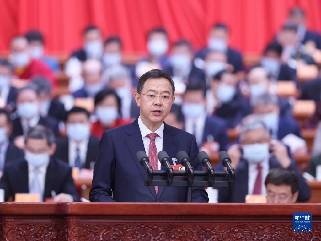 3月7日,全国政协十四届一次会议在人民大会堂举行第二次全体会议。这是张恩迪委员代表致公党中央作大会发言。新华社记者 王晔 摄