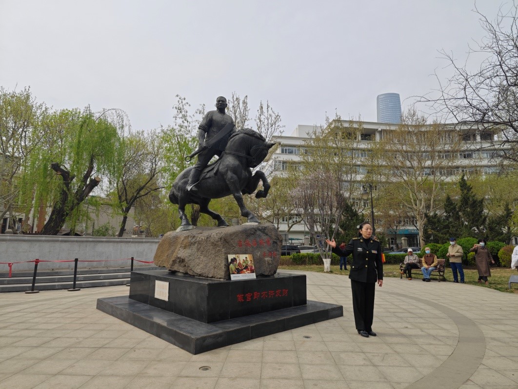 大家怀着无比崇敬的心情在吉鸿昌将军雕像前整齐列队,向革命烈士默哀,追思革命先烈的奋斗足迹。随后,吉鸿昌将军的外孙女、十四届市政协委员郑吉安为大家讲述吉鸿昌将军的生平事迹。天津市第十一中学学生代表和市政协机关年轻党员代表分别发言。最后,大家依次向吉鸿昌烈士献花致敬,表达对革命先烈的敬意和弘扬英烈精神、传承红色基因的信念。