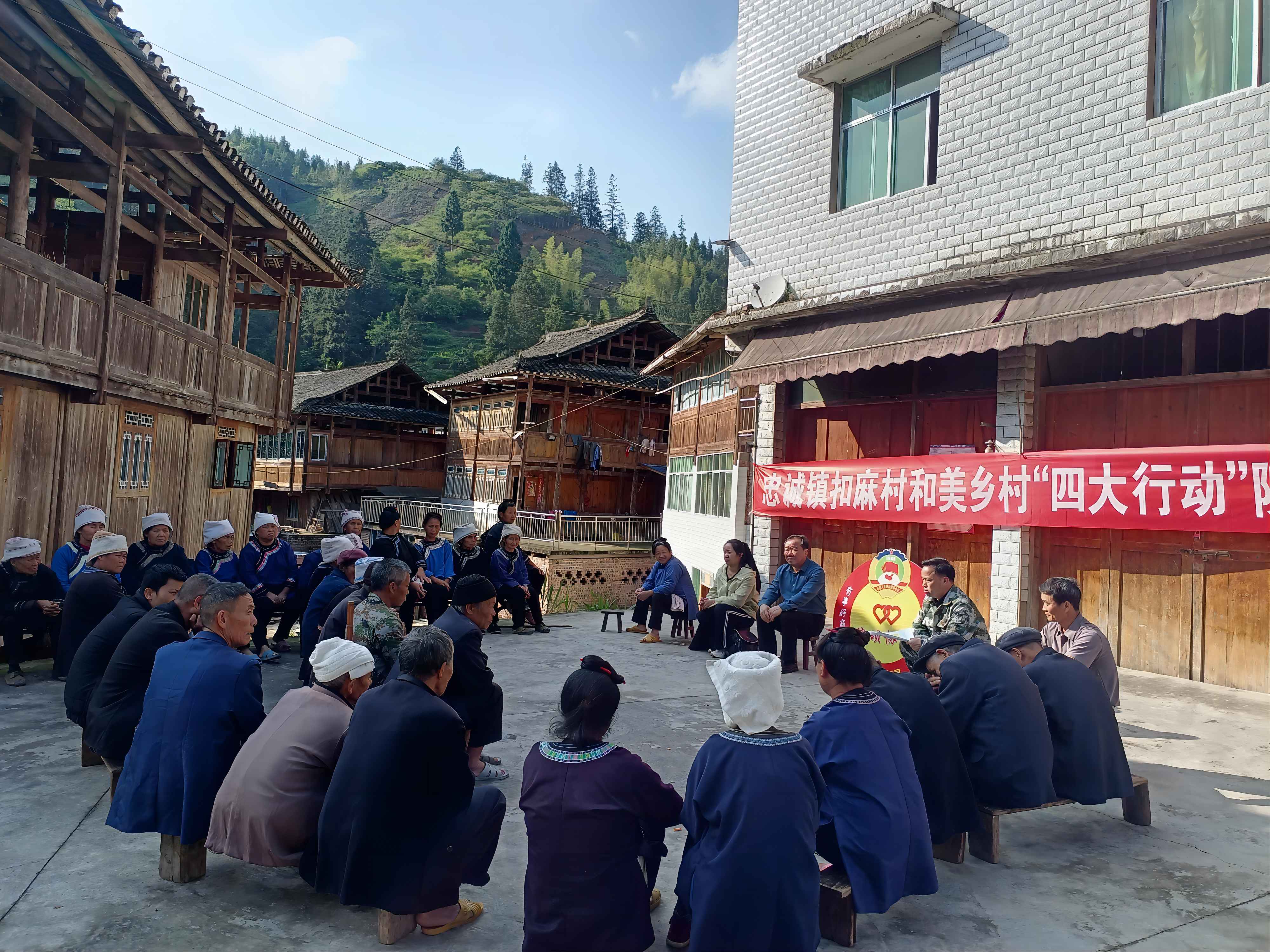 5月11日,在贵州省黔东南州榕江县忠诚镇扣麻村孖遂侗寨,召开了和美城乡“四大行动”院坝协商会议,最终完善了村规民约和“合约食堂”制度,形成政协支持、群众自建的庭院美化工作意见。今年以来,黔东南州推行和美城乡建设,推进城镇精致管理、乡村庭院美化、文明新风倡导、法治教育普及“四大行动”。 榕江县政协利用院坝协商平台,深入推动“四大行动”走深走实。(石庆伟 摄)