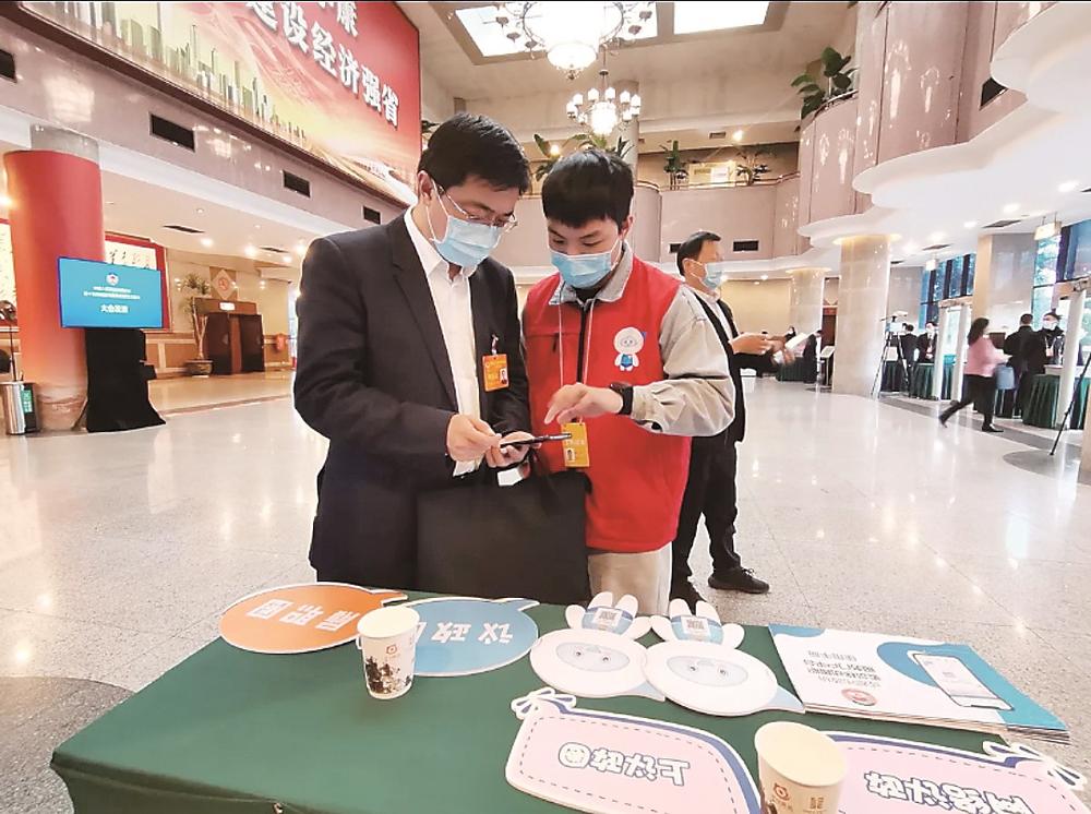 参加成都市政协全会的新任委员正在熟悉移动履职平台操作