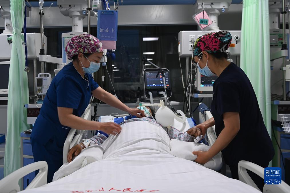 12月21日,在临夏州人民医院ICU,医护人员为重症伤员诊疗。