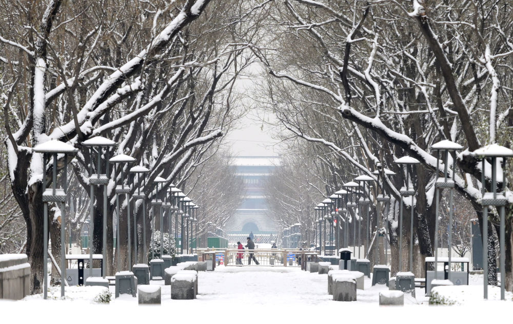 这是12月11日拍摄的永定门公园雪景。新华社记者 李贺 摄