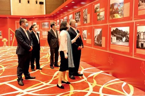 2021年7月6日,全国政协副主席何厚铧参观了由澳门基金会承办的“中国共产党的100年”大型主题图片展,澳门基金会行政委员会一行陪同何厚铧副主席参观