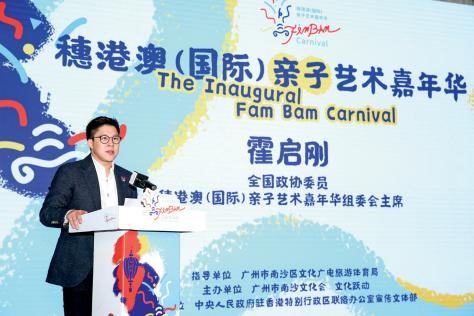2019年,霍启刚在穗港澳(国际)亲子艺术嘉年华活动现场致辞