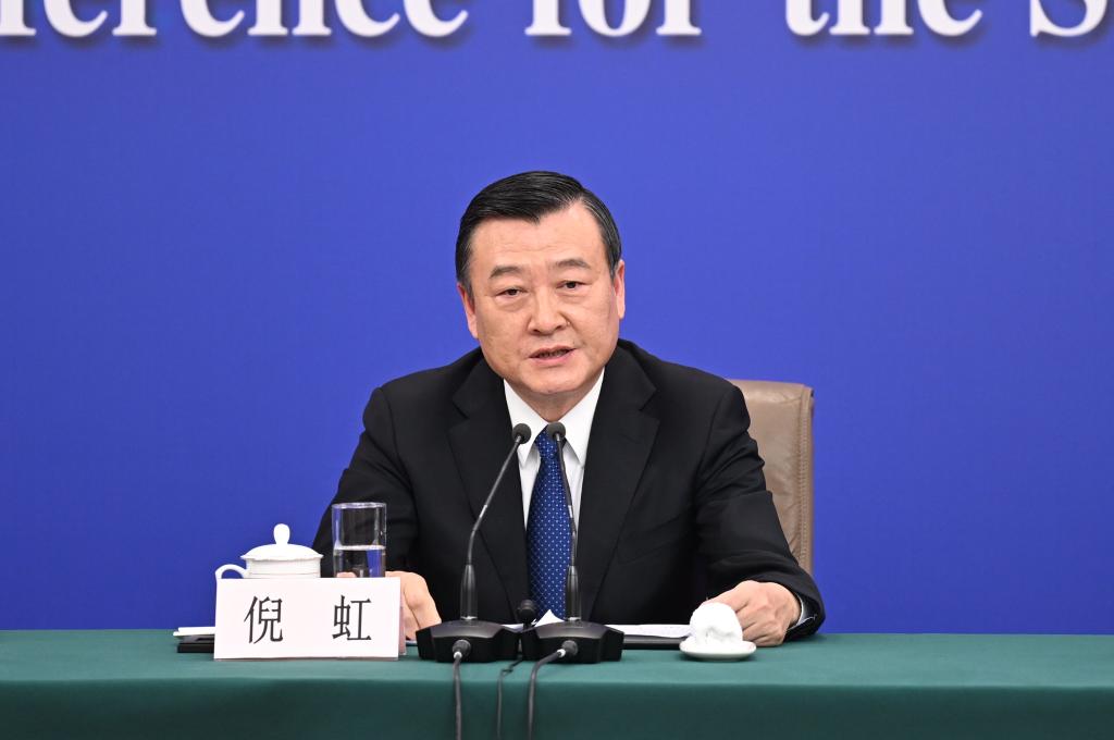 3月9日,十四届全国人大二次会议在北京梅地亚中心新闻发布厅举行记者会。教育部部长怀进鹏、人力资源和社会保障部部长王晓萍、住房和城乡建设部部长倪虹、国家疾病预防控制局局长王贺胜就教育、就业和社会保障、住房、医疗疾控等相关问题回答中外记者提问。这是倪虹在回答记者提问。新华社记者 牟宇 摄