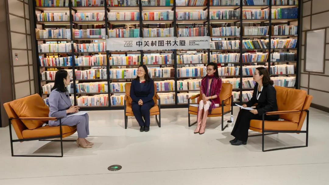 △人民政协报·人民政协网《“世界读书日”特别策划——三级委员谈读书》栏目在中关村图书大厦采访全国政协委员、首都经济贸易大学特大城市经济社会发展研究院副院长郭媛媛;北京市政协常委、全国青联常委、北京舞蹈学院人文学院教授刘岩;北京市海淀区政协委员,盛景网联联合创始人、CEO刘燕。人民政协网记者 康亮 摄