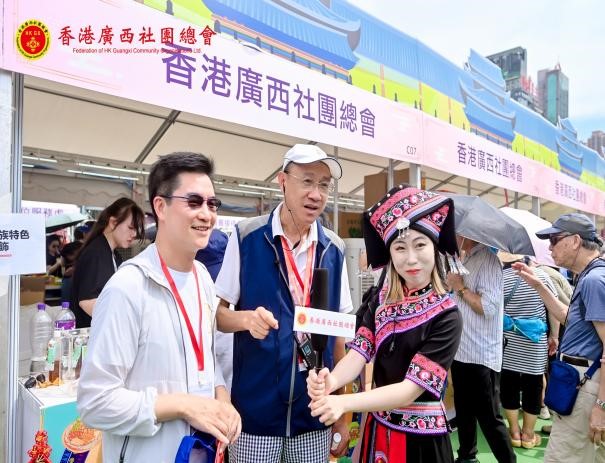 图为活动现场香港市民对广西社团市集的民族特产反响热烈