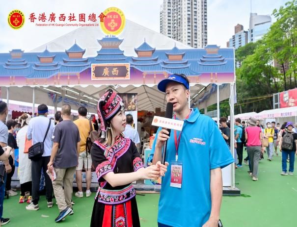 香港广西社团总会常务副会长蔡朝旭先生介绍了广西市集情况。他说,今天是六一儿童节,过几天就是端午节,香港广西社团总会举办这样的活动,就是让更多的香港市民带着家人来品尝广西美食,了解广西,感受这座壮美之都的迷人魅力和独特风情。
